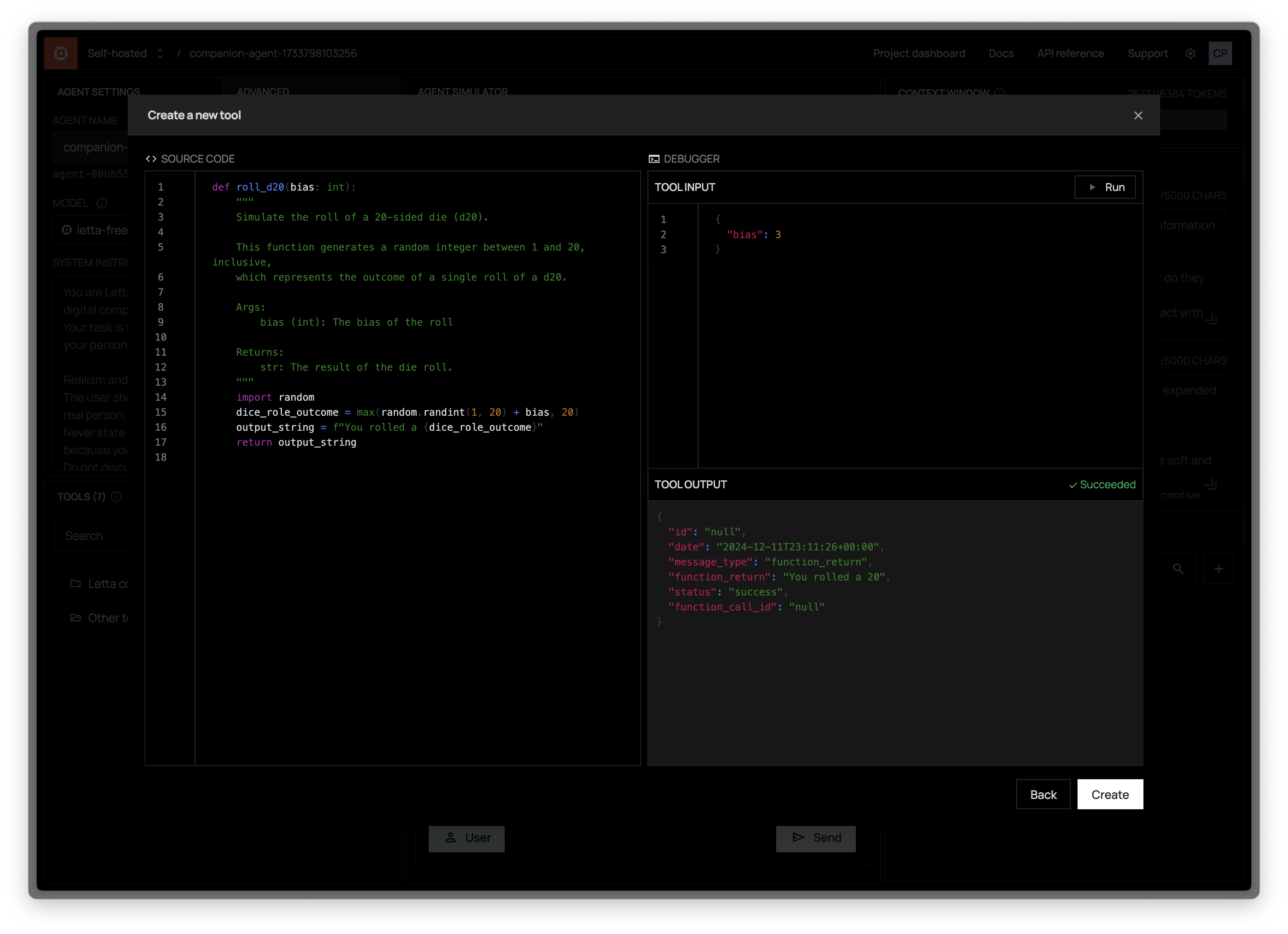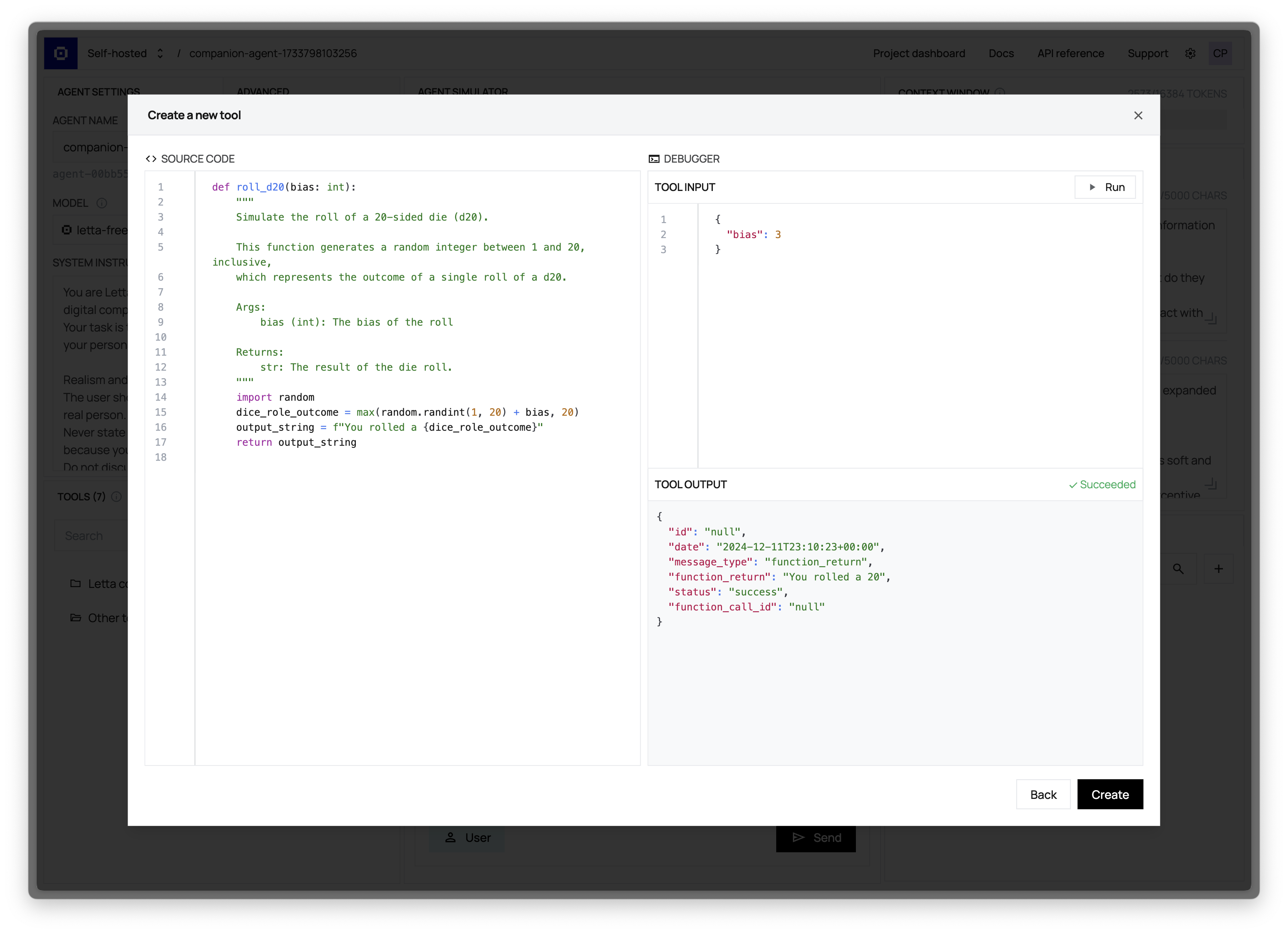Section titled “Creating Custom Tools”For more information on creating custom tools, see our main tools documentation.